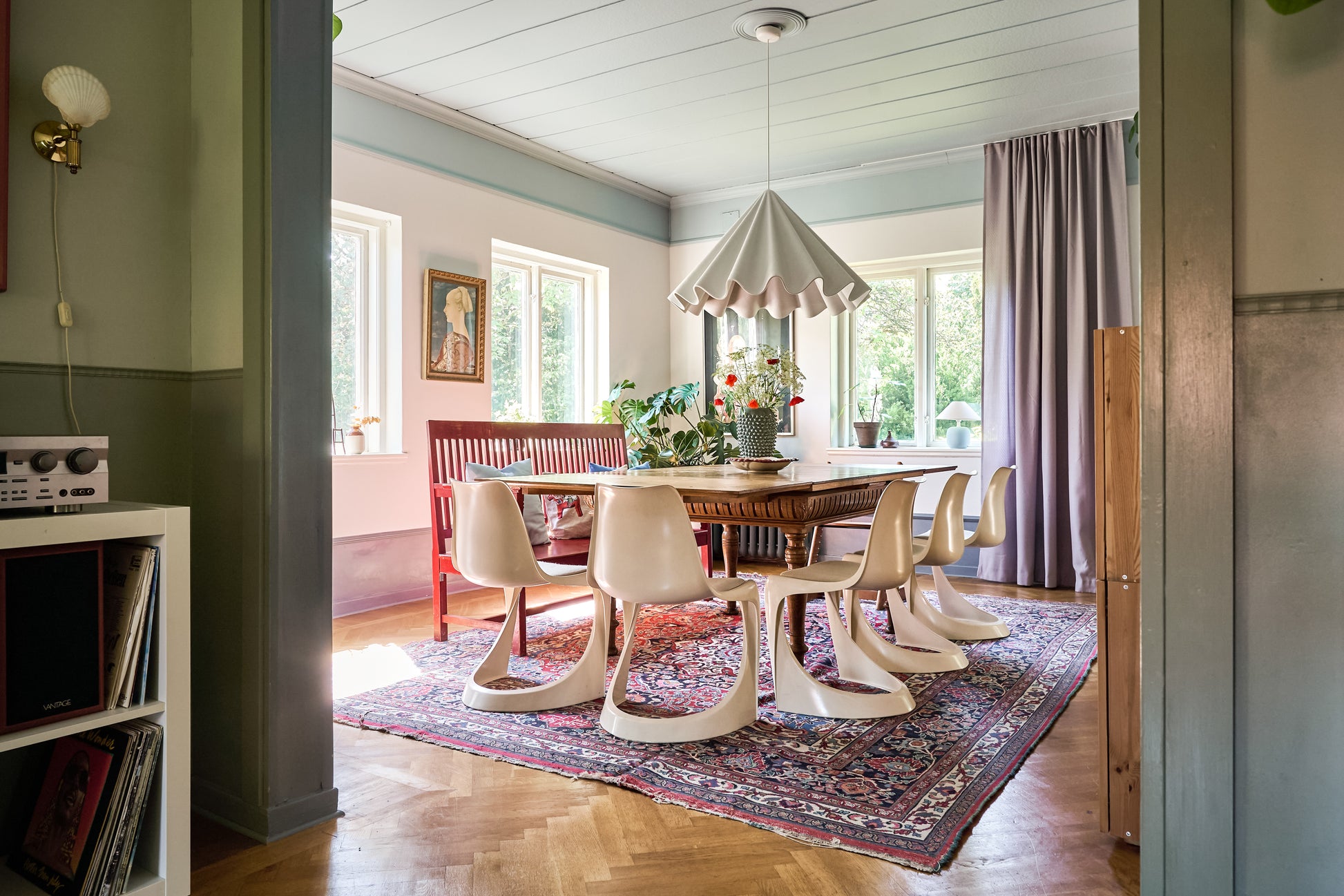 This medium-sized classic ceiling rose suits all kinds of interior spaces – from living rooms and dining rooms to larger bedrooms.